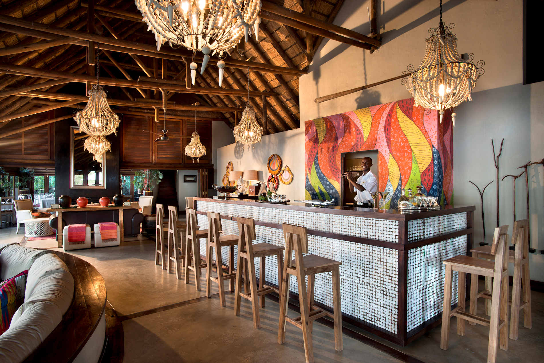 Die Gemeinschaftsgebäude der Royal Chundu River Lodge sind von den Gäste-Suiten aus über erhöhte Holzstege zu erreichen. Sie liegen über dem Boden auf Plattformen und sind aus Holz und Stroh gefertigt. Es gibt eine großzügige Lounge mit einer Mischung aus Ledersofas, Korbsesseln und Wildledermöbeln. Die Bar der Lodge befindet sich an der Rückwand, während man von der Vorderseite aus einen herrlichen Blick auf den Fluss hat. Eine Bibliothek und ein Fernsehraum laden ebenfalls zum Entspannen ein. Im Restaurant, direkt am Sambesi werden wird eine große Bandbreiter unterschiedlicher Gerichte angeboten. Gäste können auch in der Boma essen, einem beliebten Ort für Zusammenkünfte im Freien! Die Lodge hat Möglichkeiten für Spa-Behandlungen und Massagen. Swimmingpool der Lodge ermöglicht einen direkten Blick auf den Sambesi.