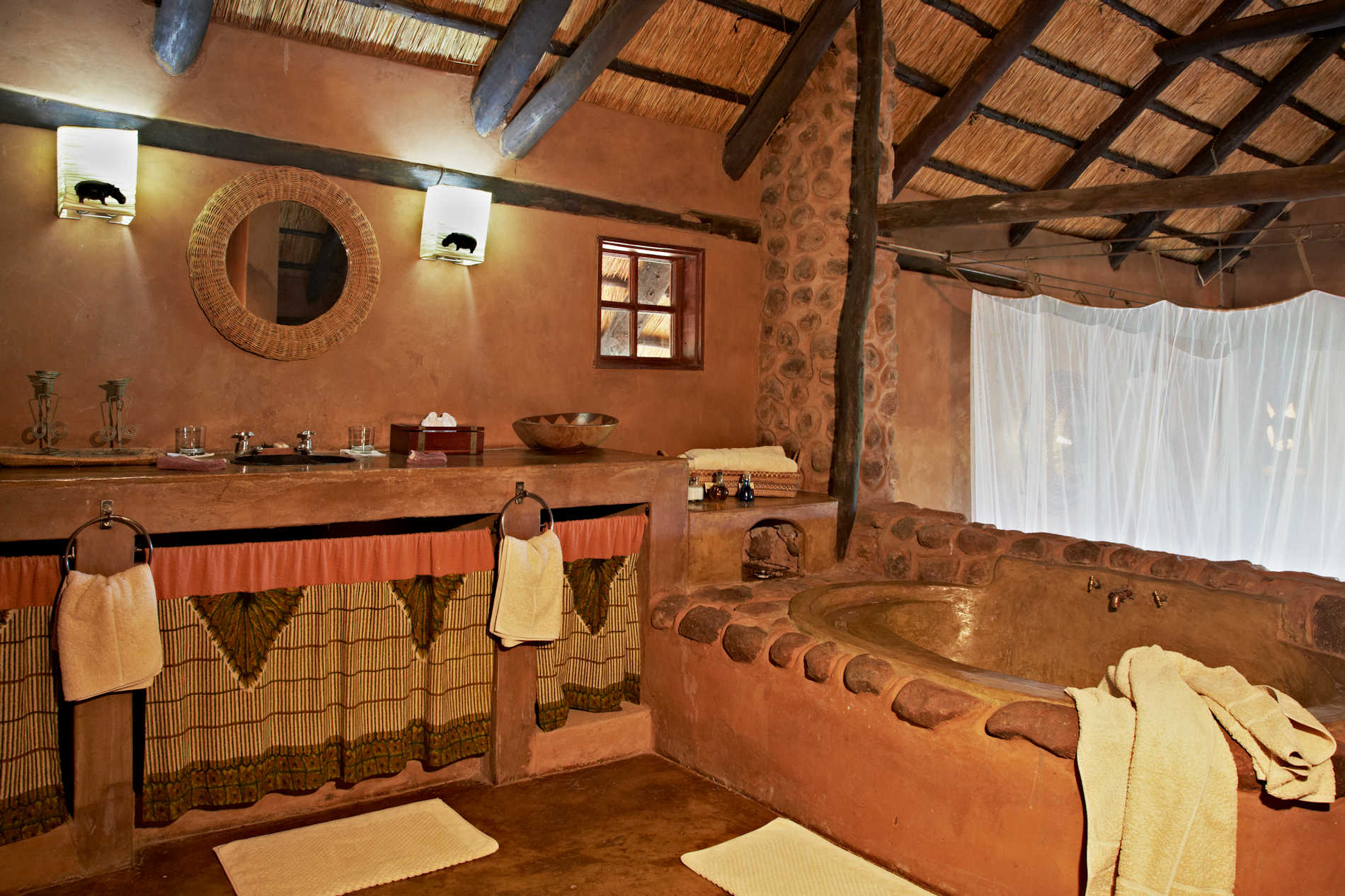 Das offene Haupthaus wurde mit Blick auf Raum und Aussicht konzipiert. Genießen Sie den Sundowner in der Lounge im afrikanischen Stil, die europäische Küche mit afrikanischem Touch im Speisesaal oder verbringen Sie eine ruhige Zeit in der Bibliothek oder auf dem Oberdeck und entdecken Sie die Geheimnisse Afrikas oder nutzen Sie das kostenlose WiFi. Im Außenbereich ziehen die Gärten eine Vielzahl von Vögeln an, darunter den Paradiesschnäpper, während der Infinity-Pool einen Blick auf den Sonnenuntergang und die Gischt der Wasserfälle bietet. Das Camp verfügt über einen elektrischen Zaun, der Elefanten und Paviane davon abhält, das Gelände zu betreten.