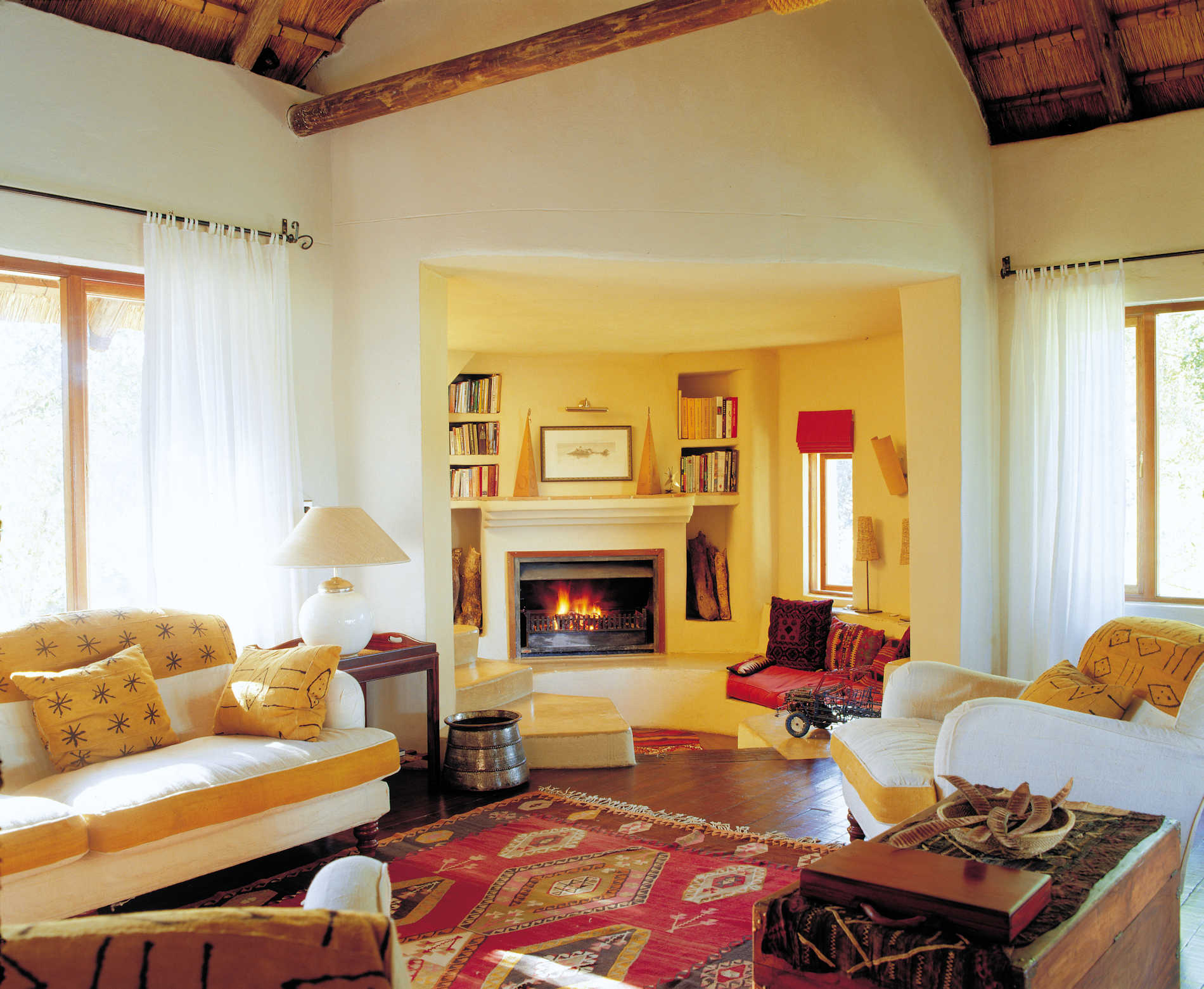 Das Wohnzimmer ist mit einem großen Sofa und zwei Sesseln ausgestattet und führt zu einer “Snuggery” mit Satelliten-TV, Video, Hi-Fi und Jetmaster-Kamin. Die meisten Zimmer haben sehr hohe Strohdecken und die Durchgänge haben 3-4 m hohe marokkanische Bögen mit 1 m dicken Wänden.