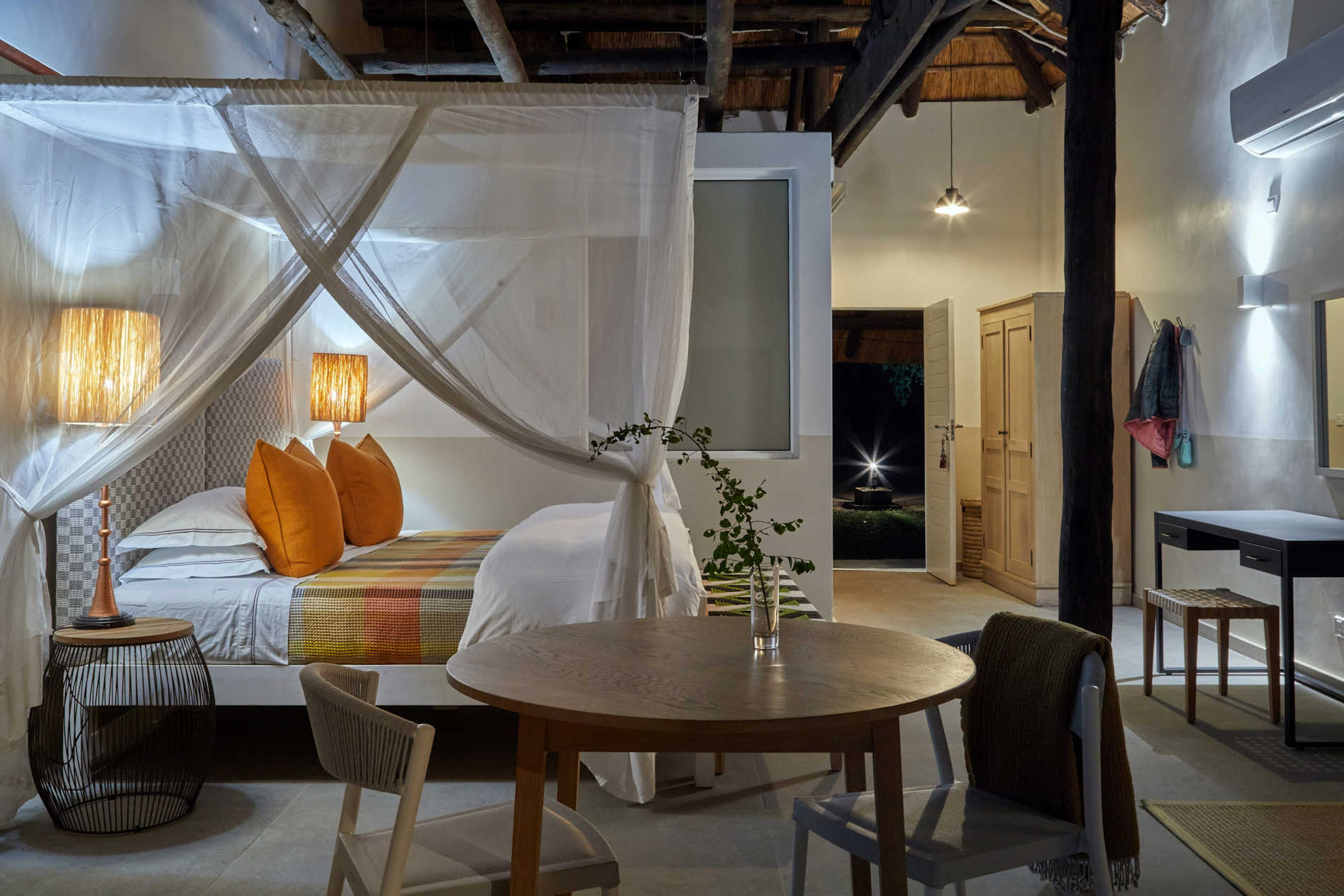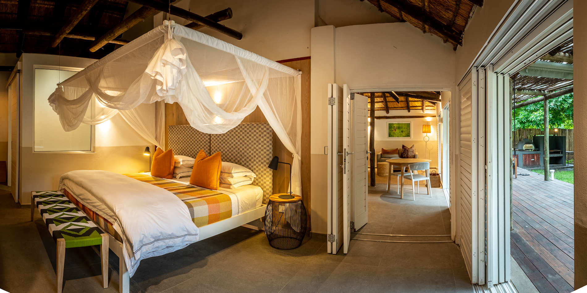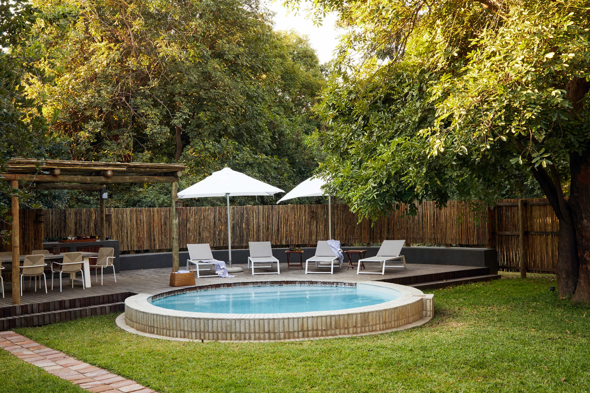 • Hauptbereich: Privater Garten mit Außenschwimmbad, Terrasse und Grillplatz, schattige Veranda und Pizzaofen. Das Bush Spa, der Kuriositätenladen, das Fotostudio und die Bibliothek sind in der Mfuwe Lodge verfügbar.