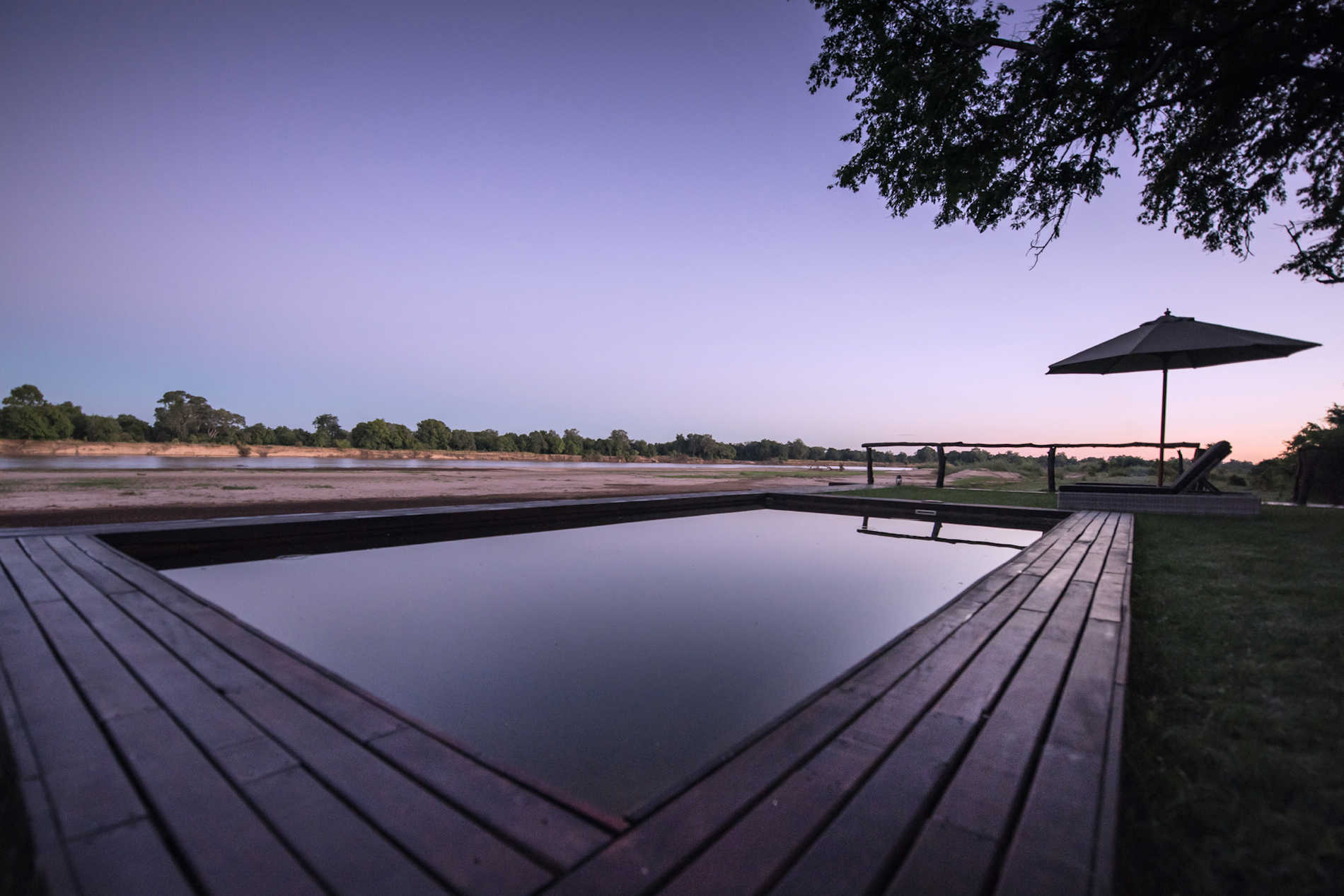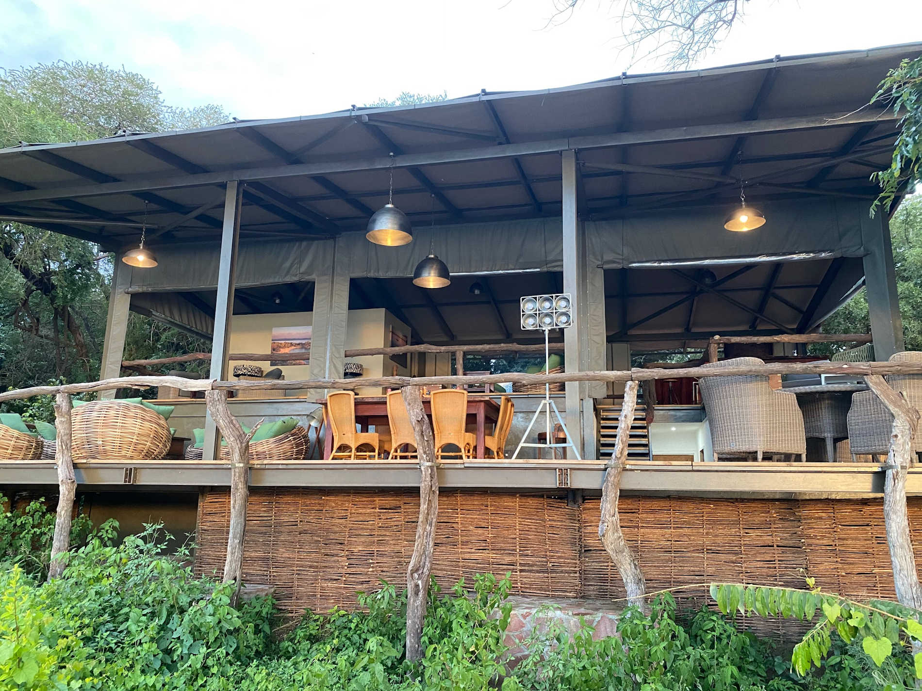 Der Hauptbereich befindet sich auf einer erhöhten Plattform erhöht und der Essbereich ist offen und bietet einen herrlichen Blick auf den Fluss. Es gibt einen großen Tisch für gemeinsame Mahlzeiten, einen zentralen Boma-Bereich für Abende am Feuer und einen kühlenden Swimmingpool.