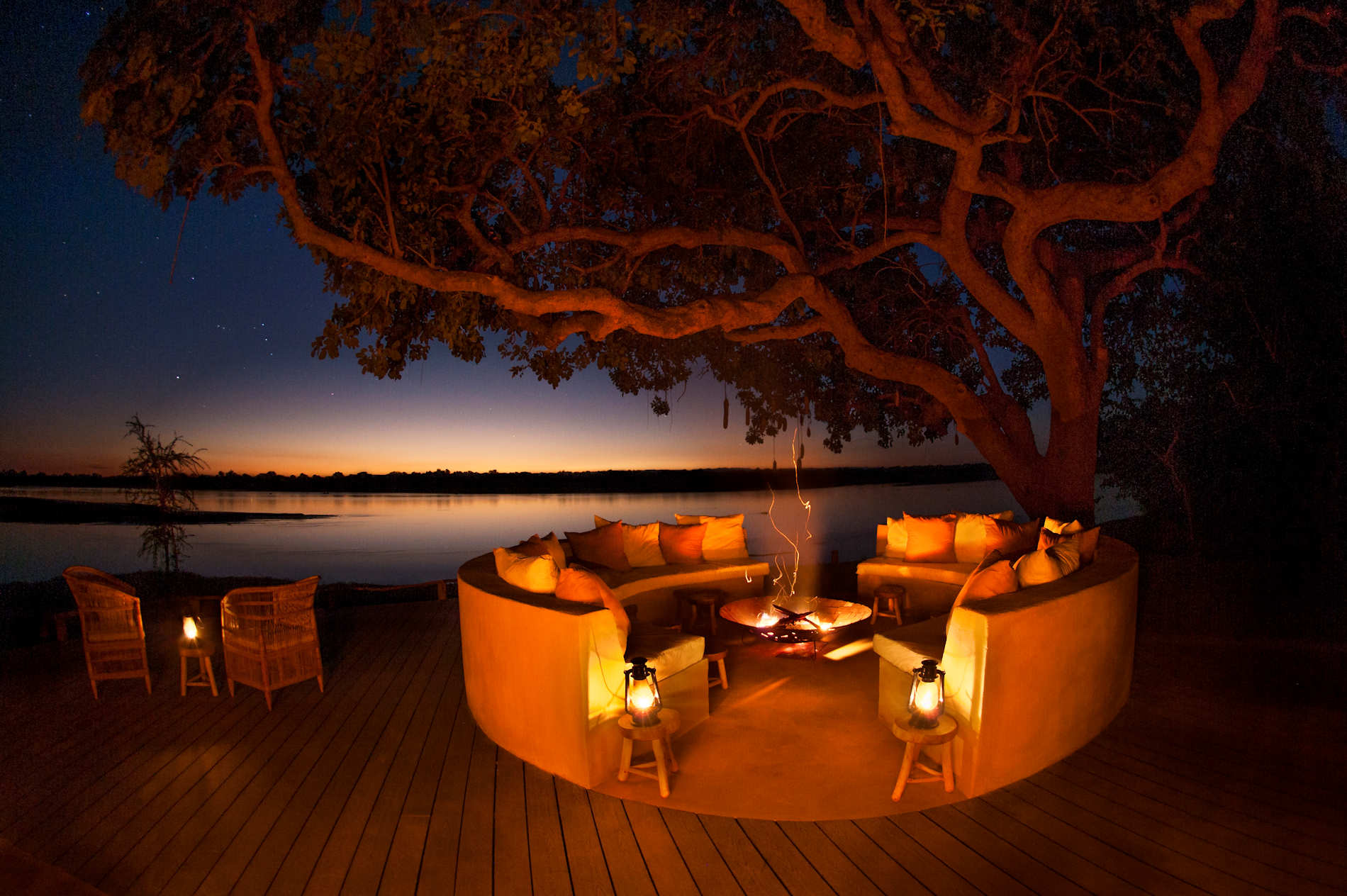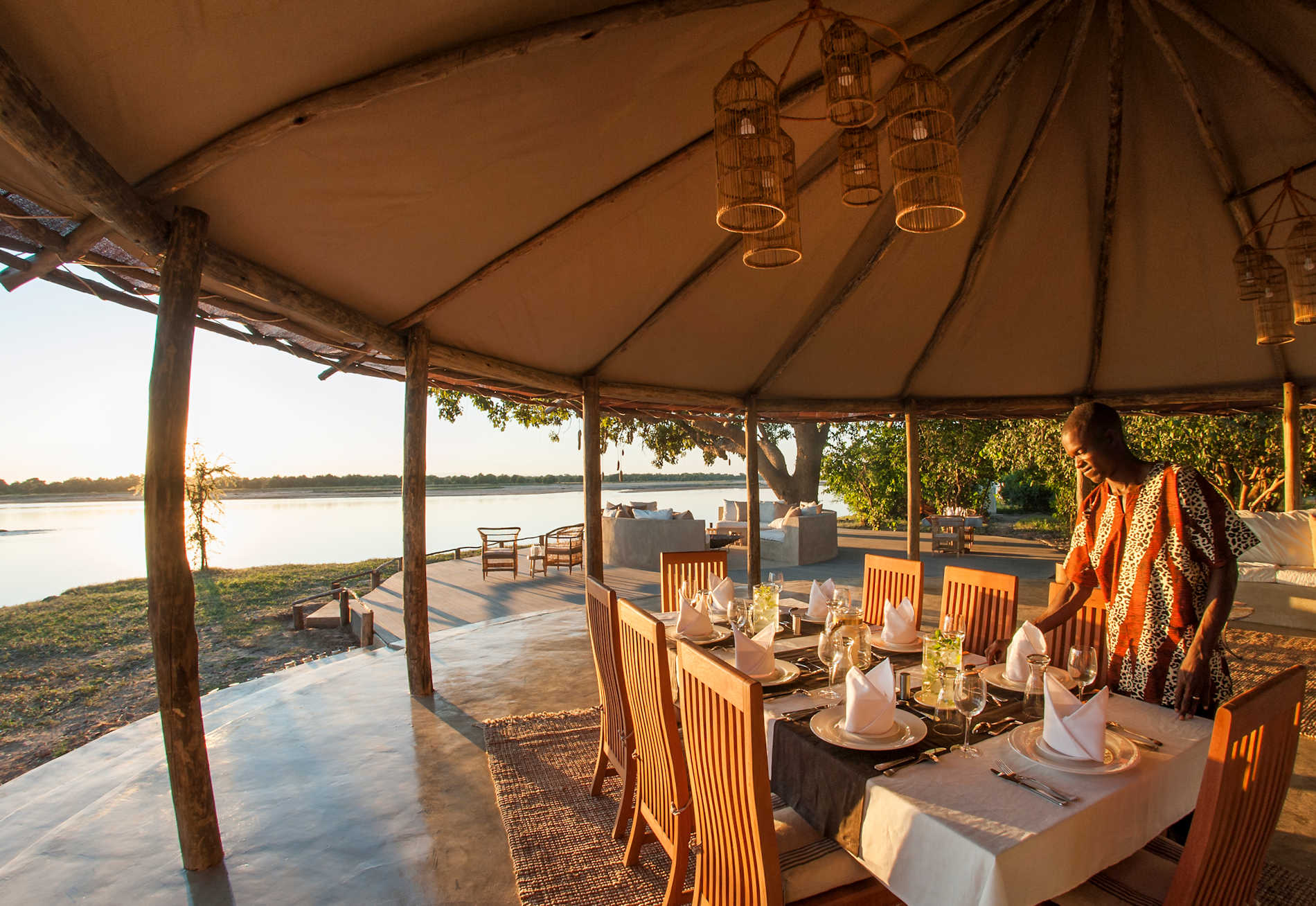 Vom Essbereich aus hat man einen grenzenlosen Blick auf den Luangwa- und den Kapamba-Fluss, wo sich Flusspferde gerne auf dem weißen Flusssand sonnen.