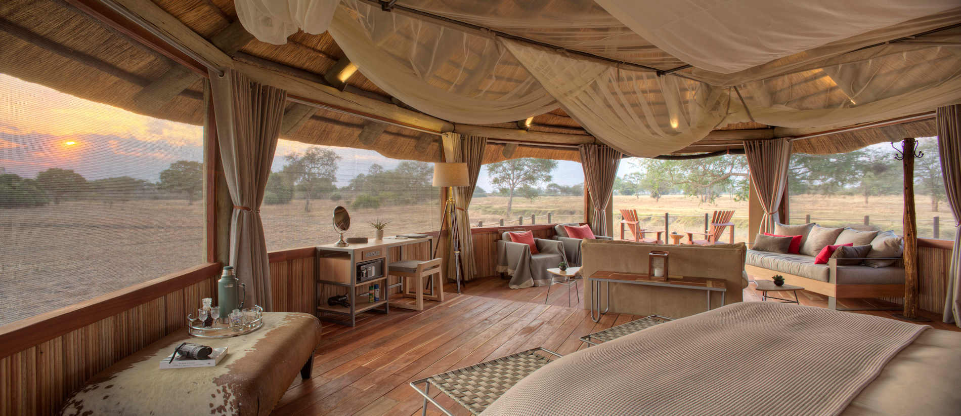 Tag 7 – von Sindabezi aus bietet sich Ihnen ein umfassendes Aktivitätenprogramm – Angeln, Kanuausflüge oder Tierbeobachtungsfahrten im Mosi oy Tunya-Nationalpark. Für abenteuerlustige Adrenalinjunkies stehen Wildwasser-Rafting, Bungee-Sprünge oder Flüge über die Fälle mit dem Microlight auf dem Menü. Oder aber Sie genießen einfach die friedvolle Atmosphäre im Camp, umgeben von der spektakulären Szenerie des kraftvoll dahinfließenden Sambesi. Den Tag beschließt ein stimmungsvolles Dinner, entweder im stilvollen Restaurant oder ganz privat auf der Veranda Ihres Zimmers.